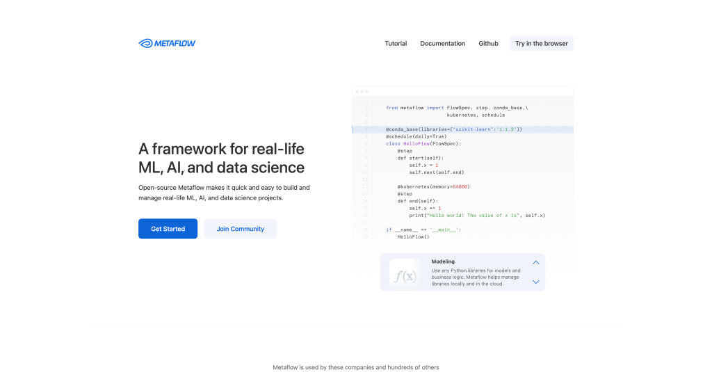 The official site calls it “battle-hardened at Netflix” and the public GitHub lists a striking scale claim: at Netflix, Metaflow “supports over 3000 AI and ML projects” and runs hundreds of millions of compute jobs across petabytes of data and artifacts. That’s not theory; that’s operations.